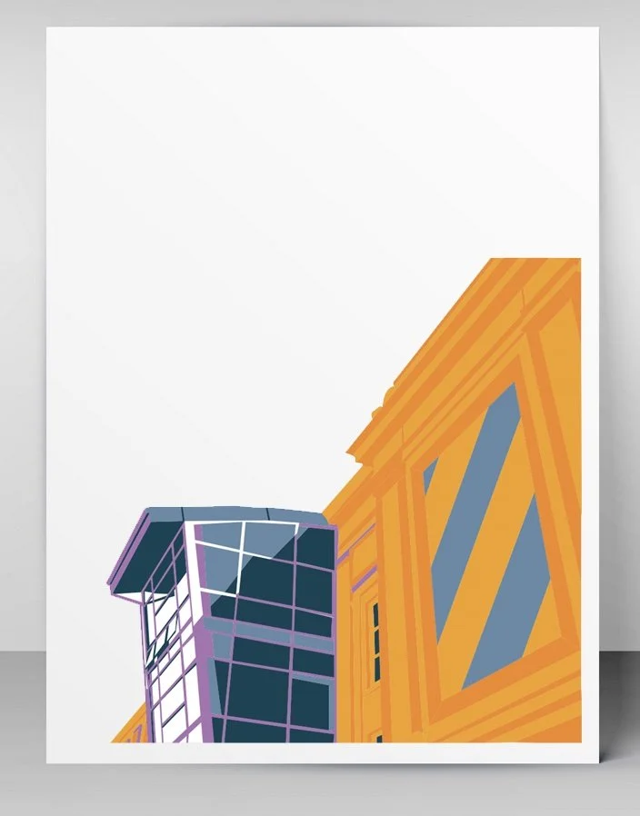 The architecture on USF’s campus is shown in nine separate pictures with a twist on color and angles. The work consists of a maximum of five colors to express the natural architectural shapes and form. Blues and oranges work well to create contrast and find how colors interact became an important part of this project. This project is meant to show the beautiful parts of the buildings we see on campus and how we depict them through design.